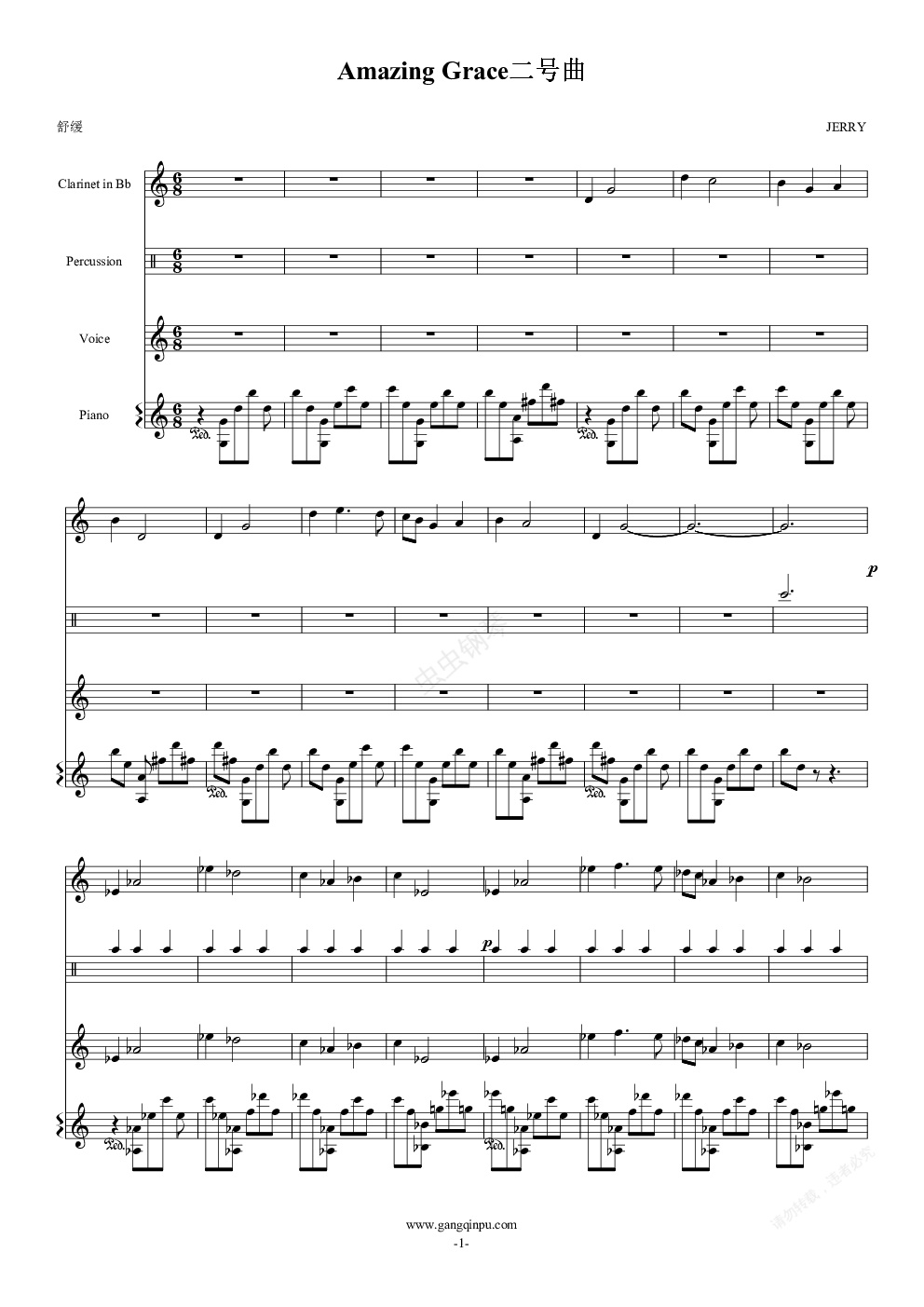 钢琴谱:amazing grace二号曲
