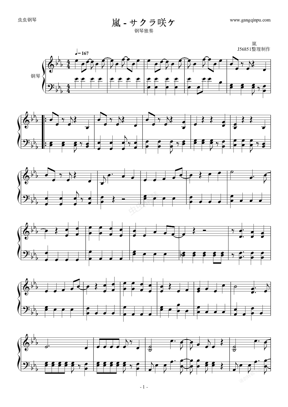 钢琴谱:嵐 - サクラ咲ケ