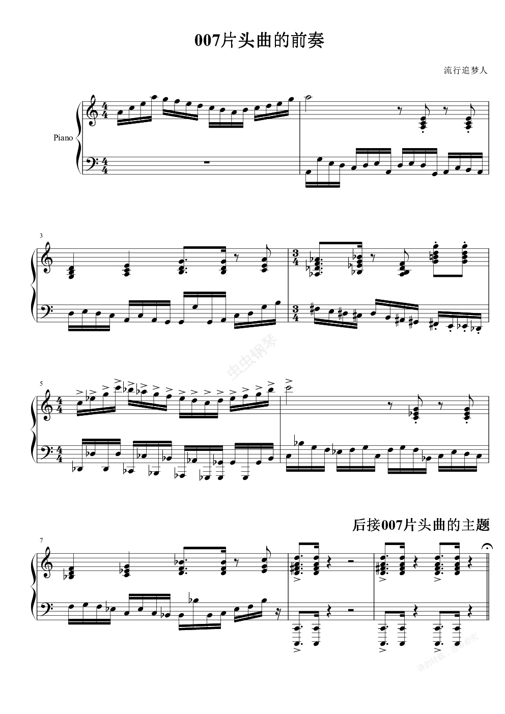 钢琴谱:原创/007片头曲的前奏