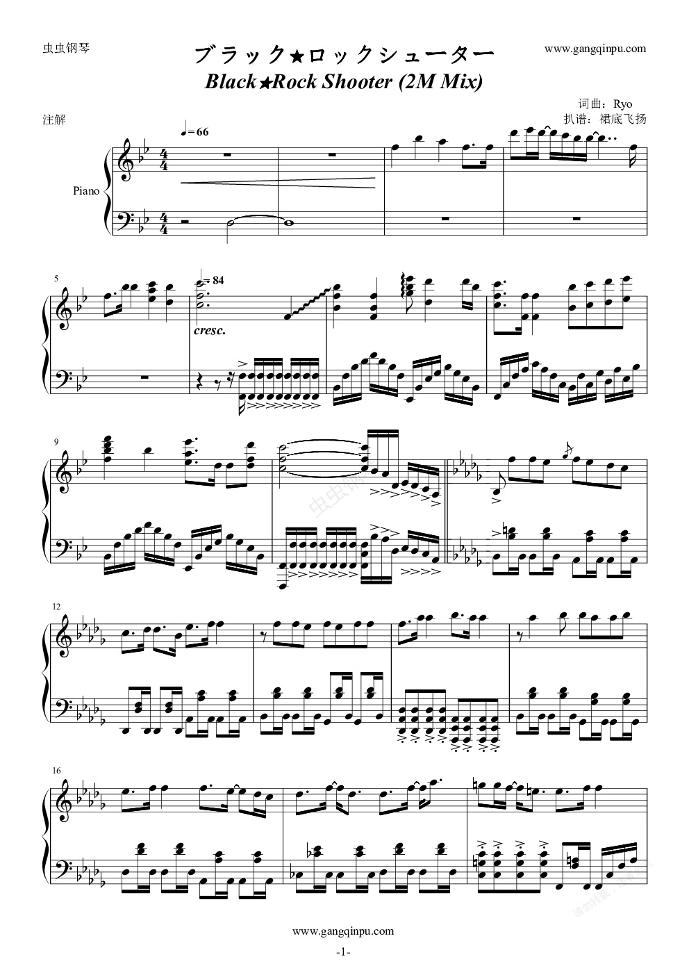 钢琴谱:BLACK★ROCK SHOOTER 2M MIX