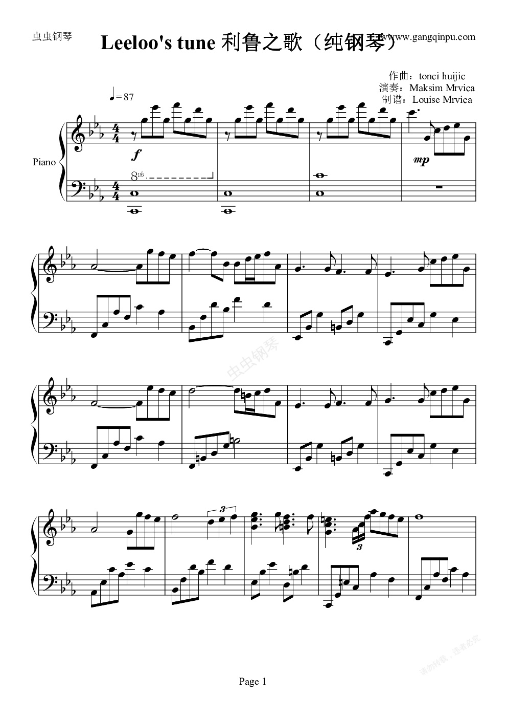 钢琴谱:Leeloos tune 利鲁之歌(纯钢琴)