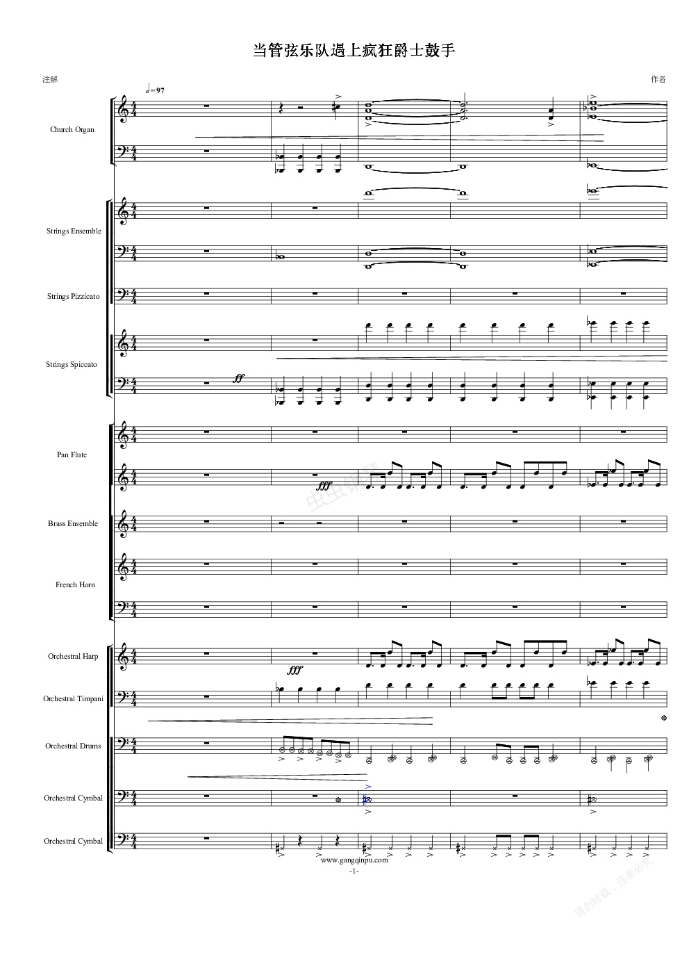 钢琴谱:当管弦乐队遇上疯狂爵士鼓手-震撼总谱