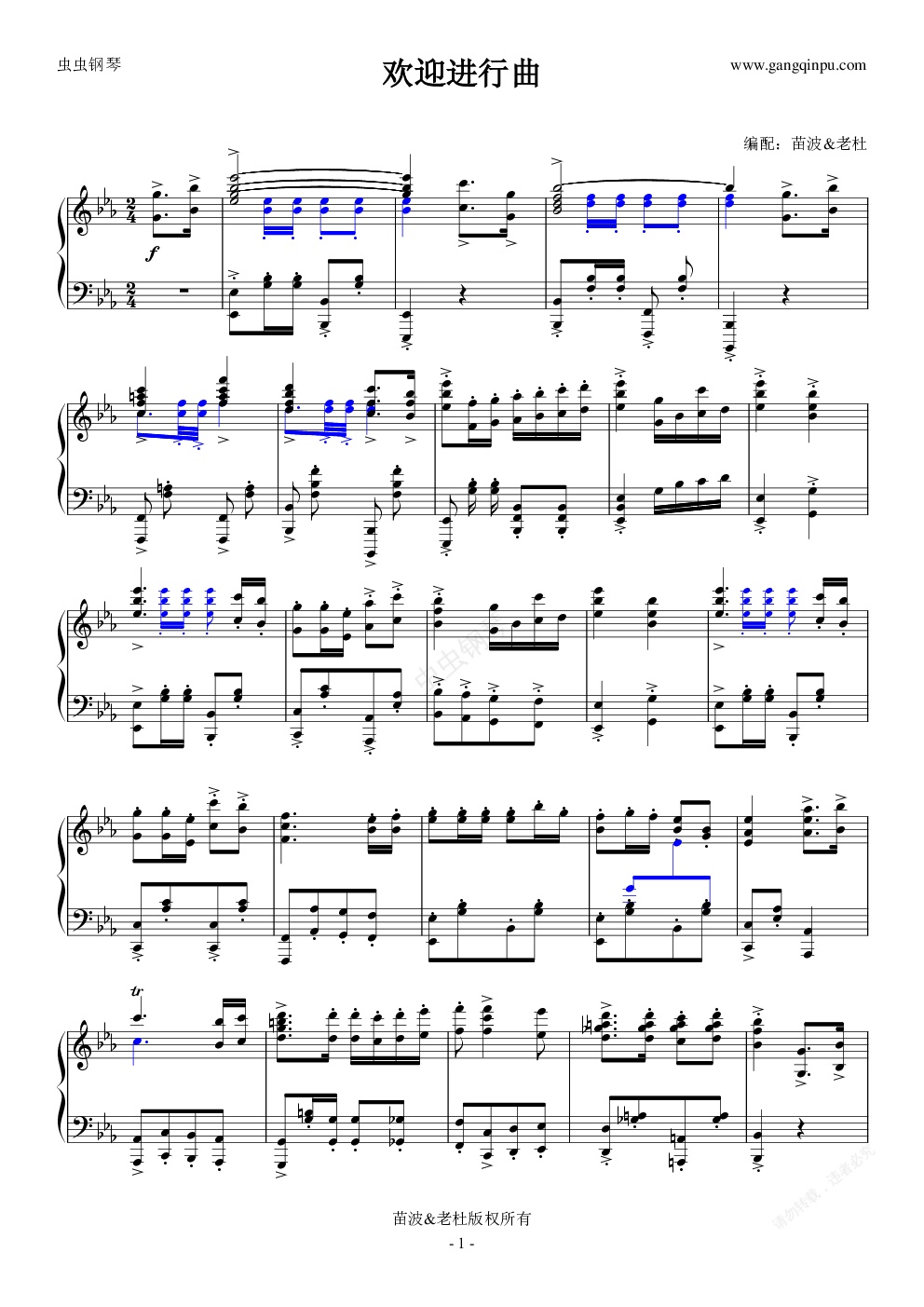 钢琴谱:《欢迎进行曲》钢琴独奏精编版