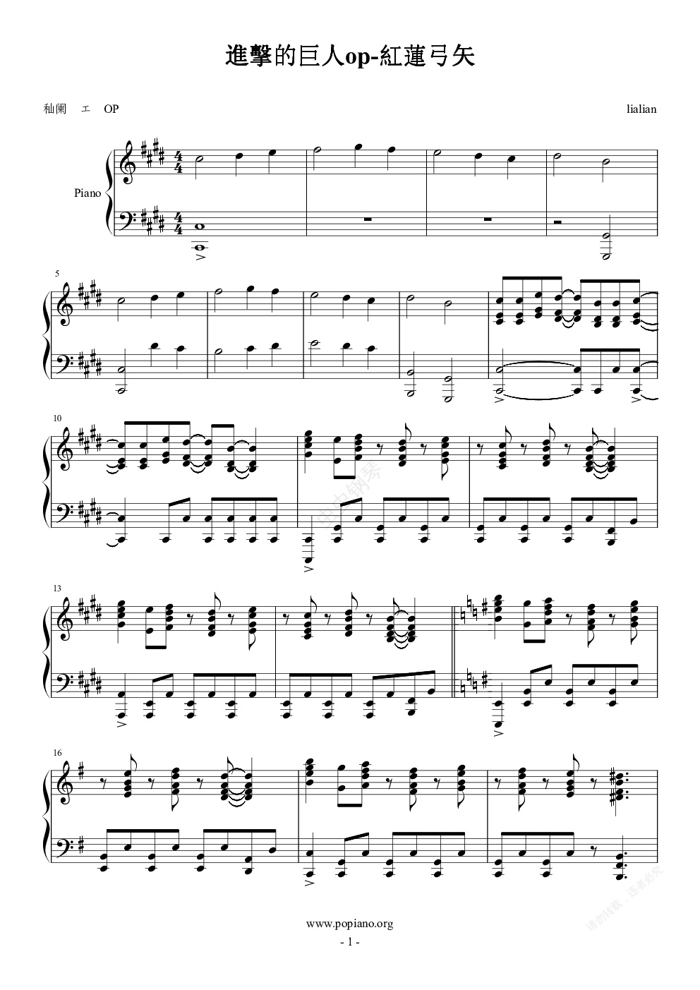 钢琴谱:進擊的巨人op-紅蓮弓矢