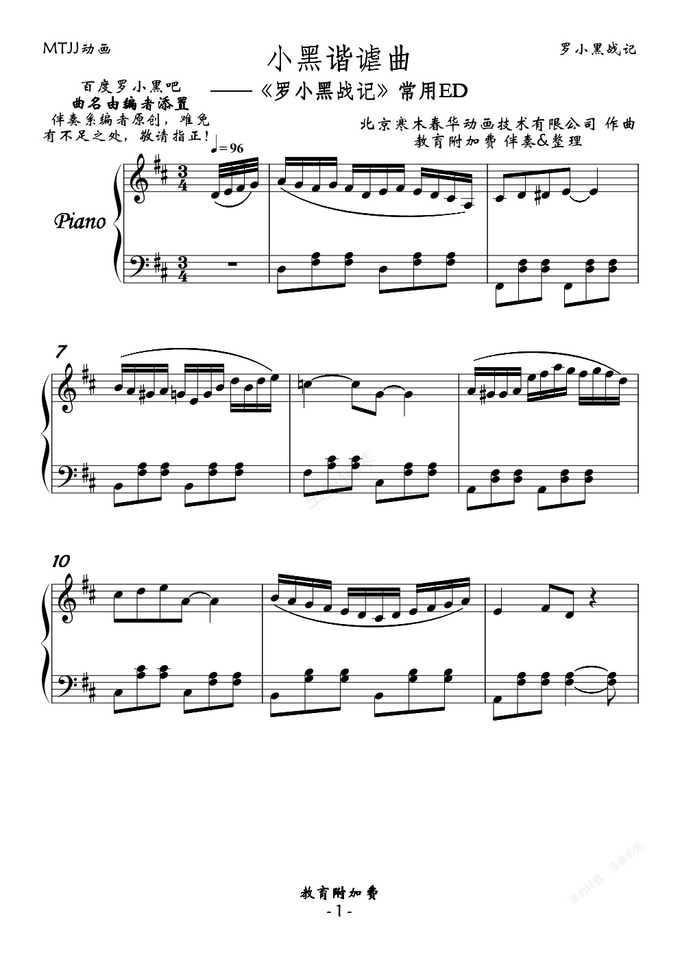 钢琴谱:小黑谐谑曲【曲名系编者添加】