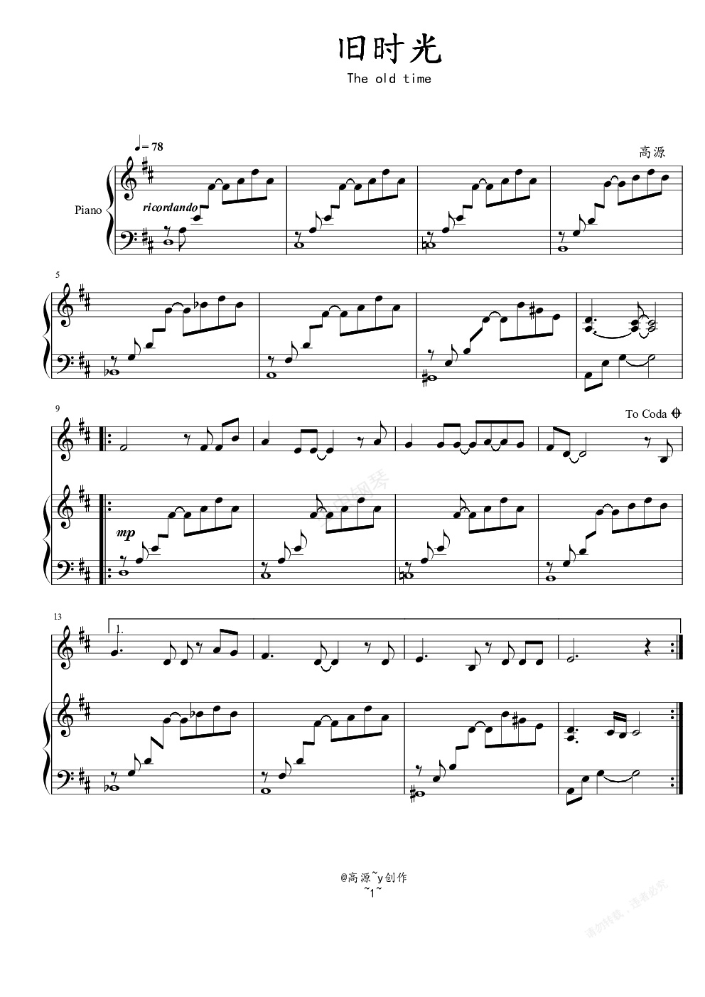 钢琴谱:旧时光