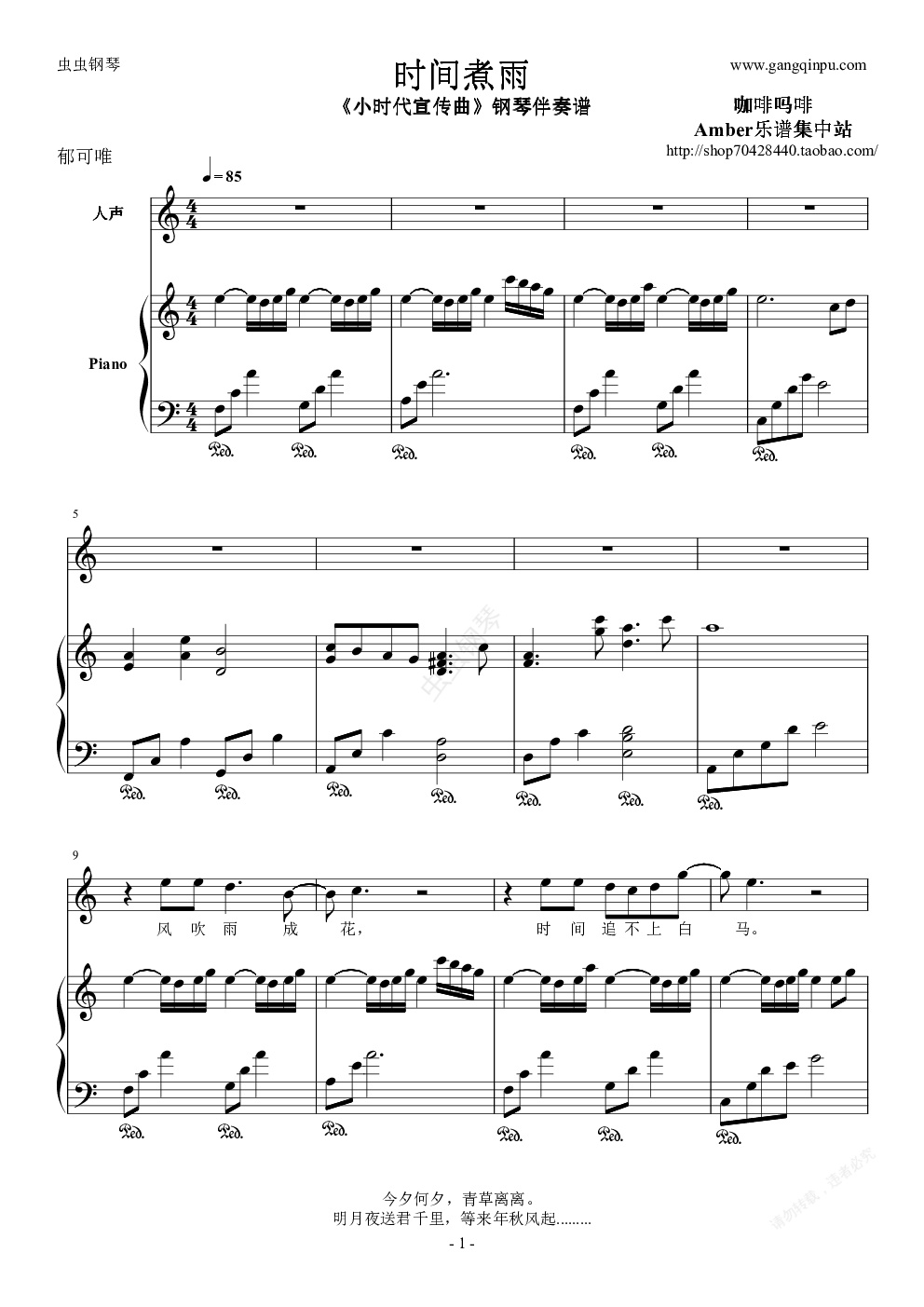 钢琴谱:《时间煮雨》钢琴伴奏谱