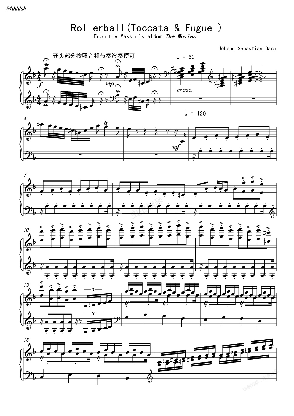 钢琴谱:Rollerball(Toccata & Fugue )-托卡塔与赋格