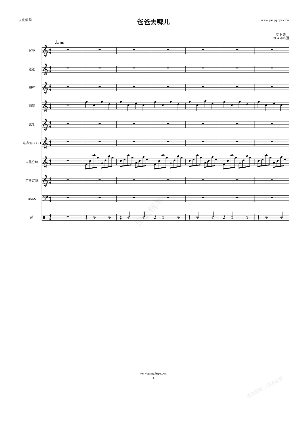 钢琴谱:爸爸去哪儿(C大调)总谱