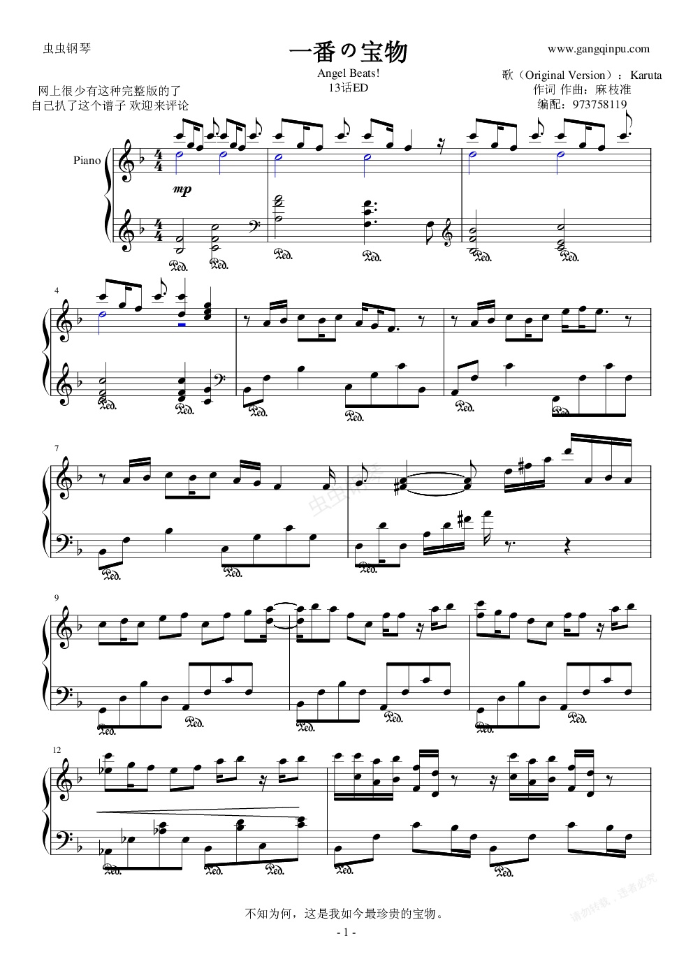 钢琴谱:一番の宝物(original ver)