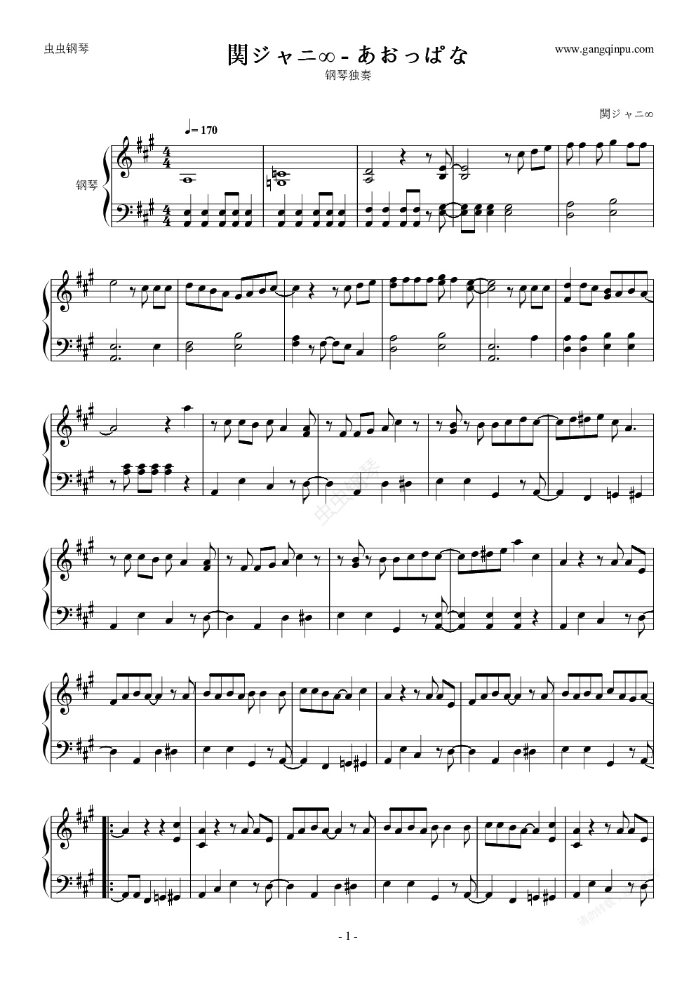 钢琴谱:あおっぱな
