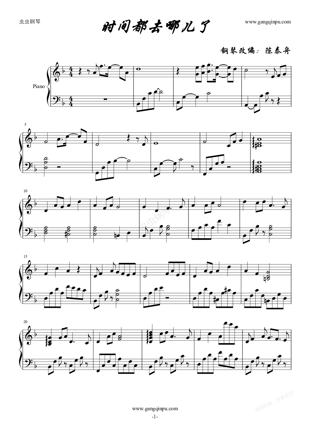 钢琴谱:时间都去哪儿了(春晚独奏版)