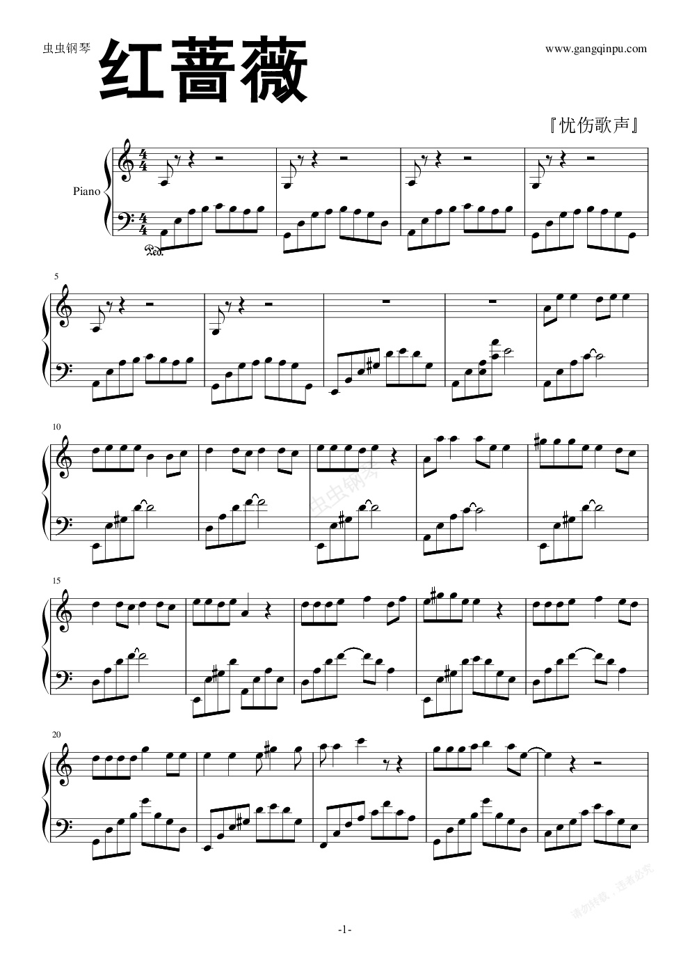 钢琴谱:红蔷薇