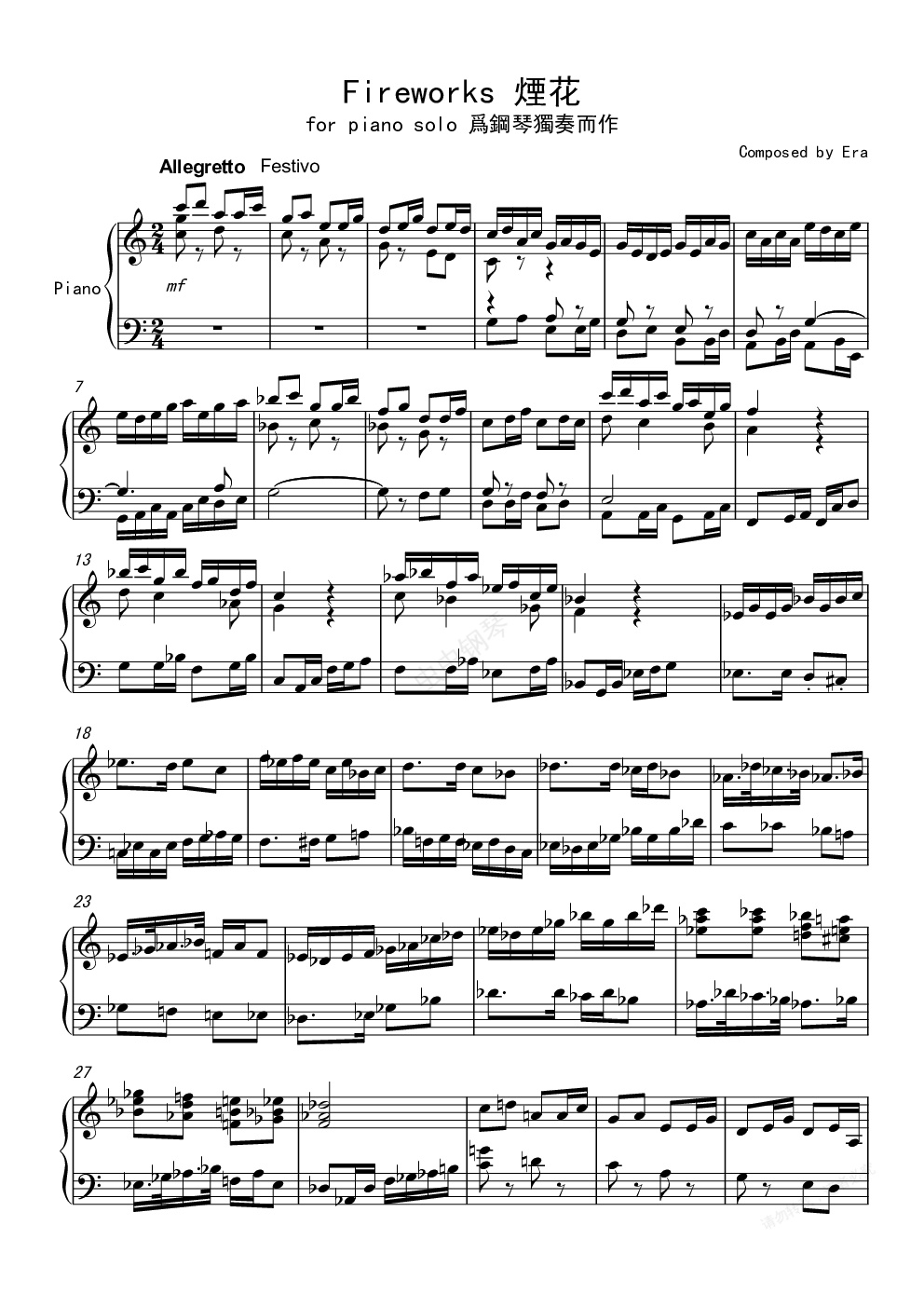 钢琴谱:煙花