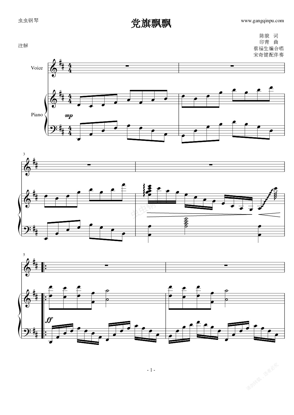 钢琴谱:党旗飘飘