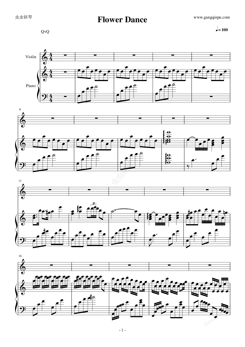 钢琴谱:Flower Dance钢琴小提琴协奏
