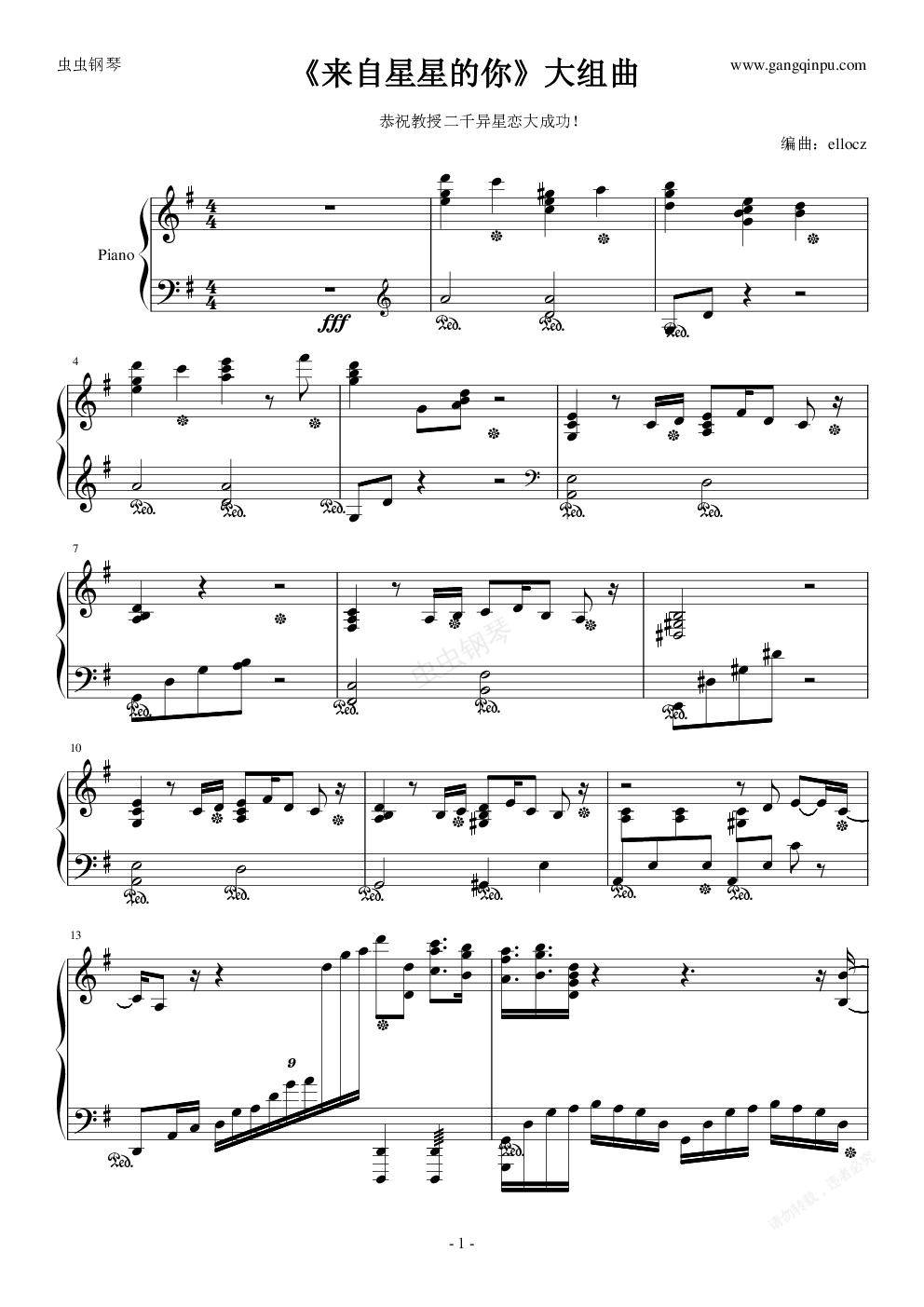 本曲只是图个效果而已,很多谱面上从来没见过的东西那些都是突出效果用的,希望乐谱大神和钢琴大神们手下留情~~ELLO乐理还是幼儿园水平……