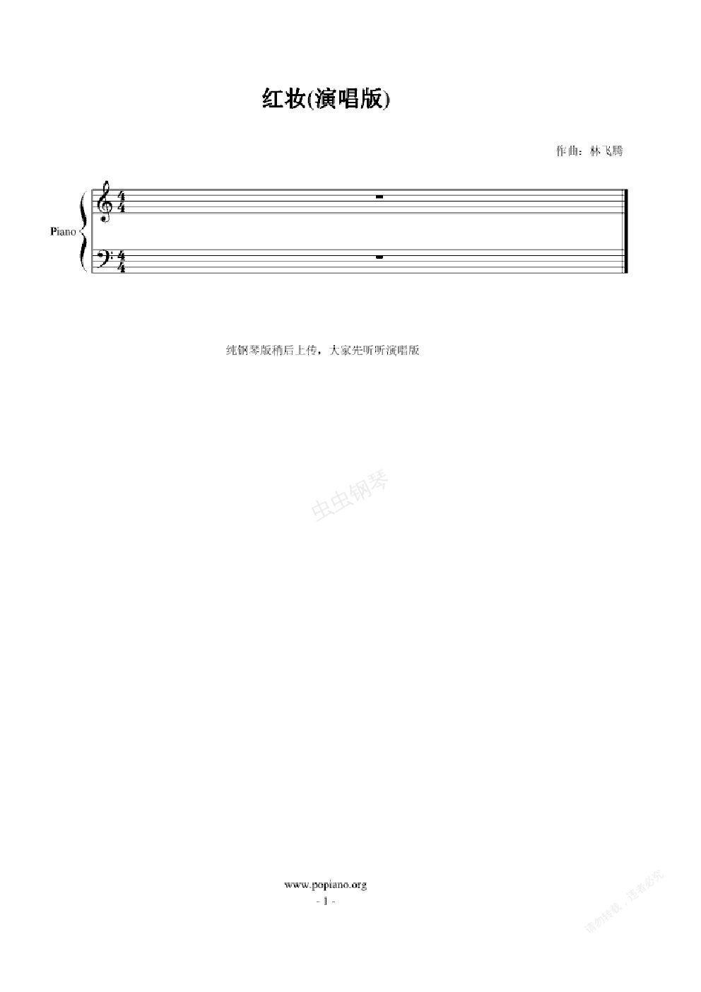 《红妆》(演唱版) 作曲:林飞腾   作词:小王子  林飞腾 演唱:林飞腾   夜雨轻叹  吹散了思量    素不清  落叶纷    沦落到迷茫    谁笑牵挂  乱了几缕发    胭脂泪  换红妆    寄一世离殇    淡淡一笑 玉墨倾城铸造了难忘    古道客栈 谁抚琴声静如画 ** 轻轻地翻阅青玉案 倚罗帐 燃檀香    寥寥思绪化青烟 缠指尖 绕心上    几许红颜断愁肠    泪沾衣角 轻抹半碗酌酒    寂寞红尘谁明我心上    谚然穿上霓羽裳 照铜镜 独自赏    谁料往事如烟 一曲离殇轻弹入心房    岂莫繁花何时还    江南烟雨 几片叶已知秋    起舞弄风华 ---------------------------------------------        漠漠轻寒 临行送客船    钟声响 水茫茫    荡漾了月光    遥遥相望 秋风夜雾凉     沾衣裳 湿红妆    迷糊了模样    昨日江南 莺飞草长三月旧时光     西风古道 墨色落款已泛黄    轻轻地翻阅青玉案 倚罗帐 燃檀香    寥寥思绪化青烟 缠指尖 绕心上    离人相思胭脂泪    几度轮回 翻越万水千山    化作细雨轻敲绿纱窗    河上船儿来又往 渔歌唱 人流换    谁知回忆偏偏 寄生青苔刻入了城墙    春风又绿江南岸    浅草乡云 孤单没入落花    何时才归还  &