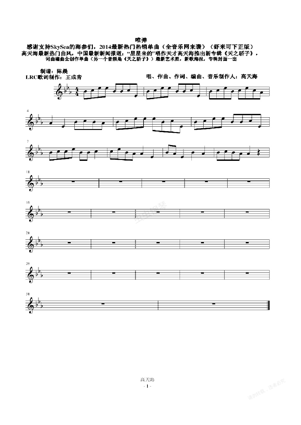 钢琴谱:唯弹(全音乐网来袭)