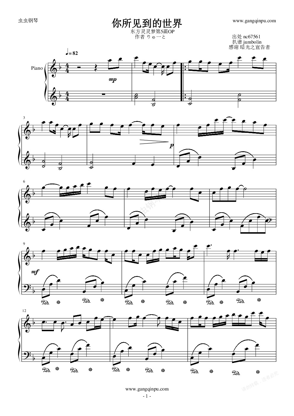 钢琴谱:【东方灵灵梦】你所见到的世界