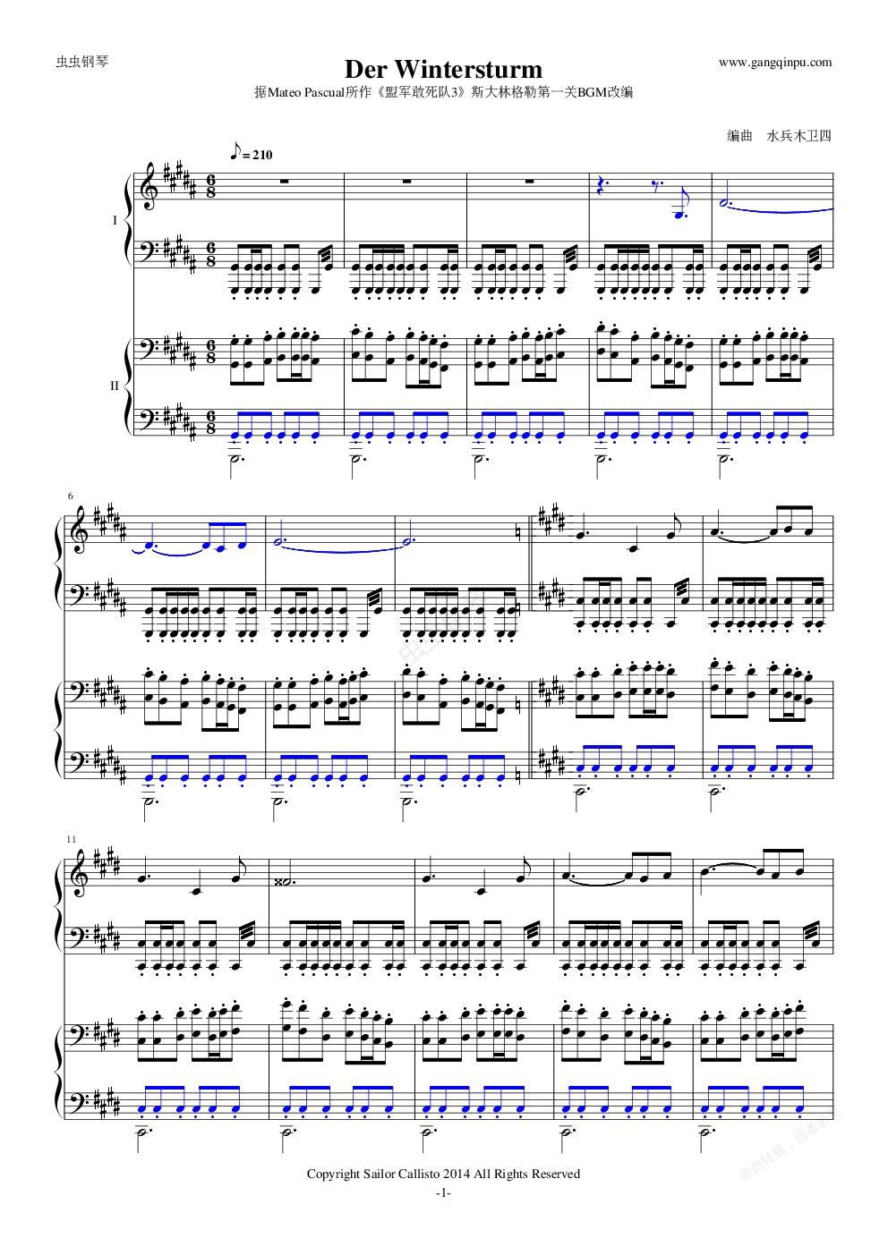 钢琴谱:Der Wintersturm-《盟军敢死队3》斯大林格勒第二关BGM