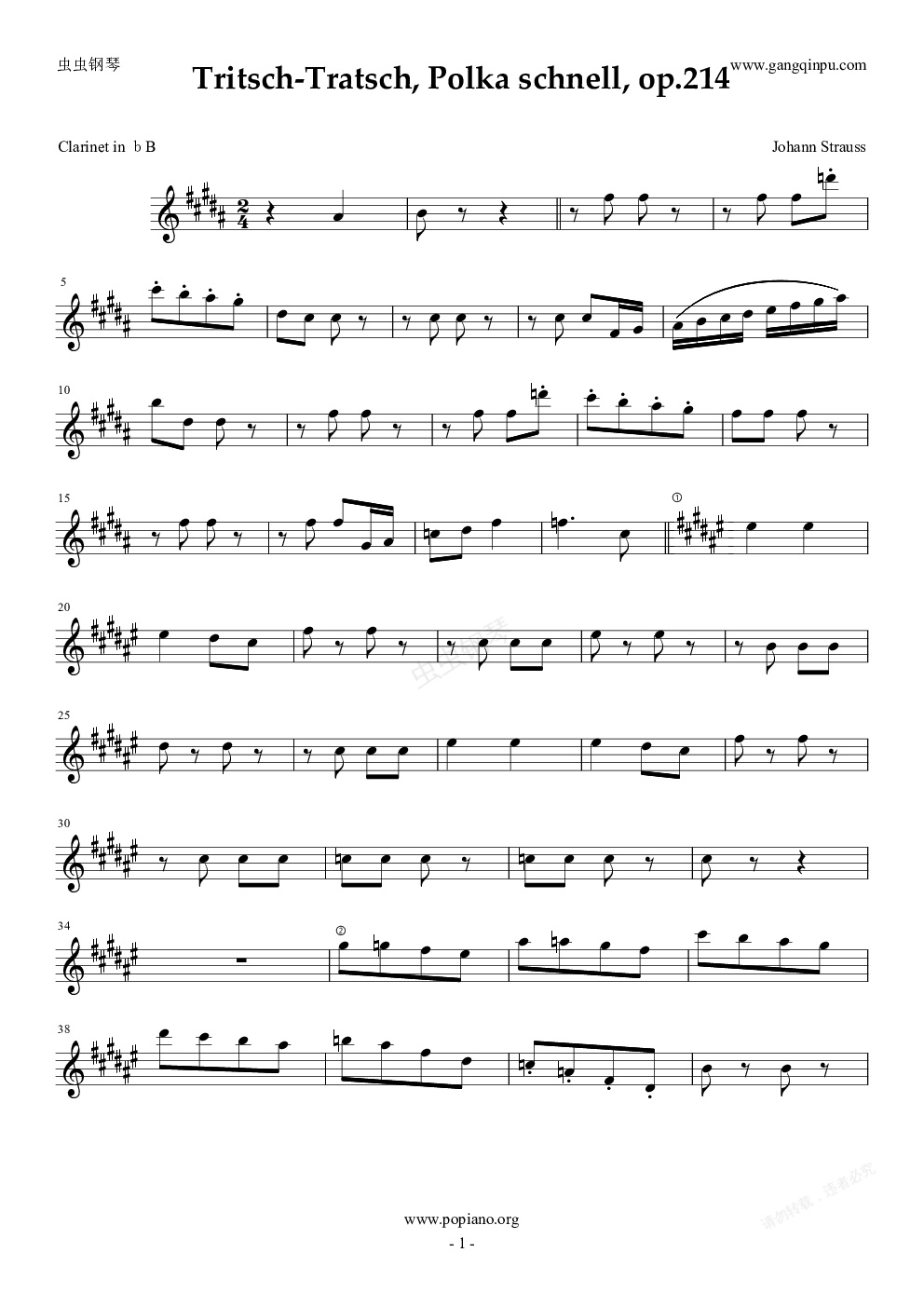 钢琴谱:闲聊波尔卡(单簧管分谱)
