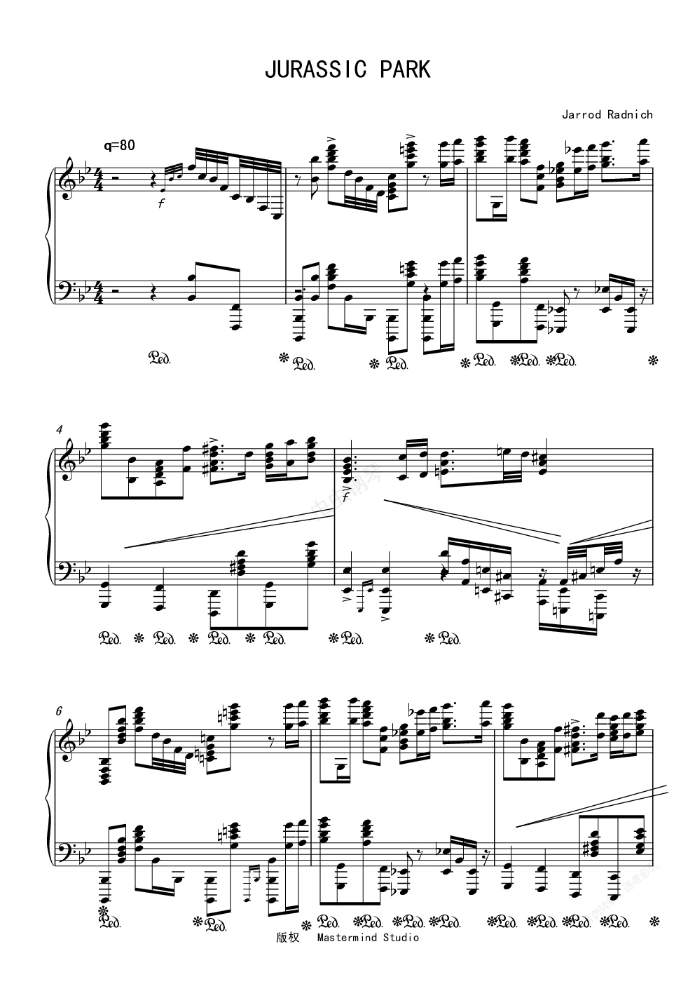 最有名的电影钢琴改编 的作品(加勒比海盗钢琴版便是他所作),侏罗纪公园,选取了电影中最经典熟悉的部分改编为钢琴曲。采用了古典的编曲方式融进现代音乐,丰富无比,钢琴独奏堪比交响乐。