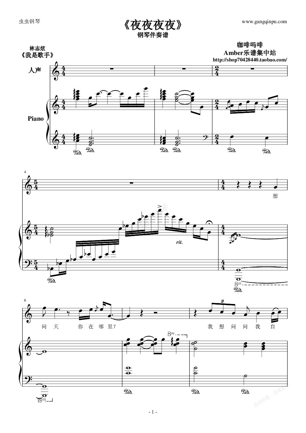 钢琴谱:林志炫《夜夜夜夜》钢琴伴奏谱