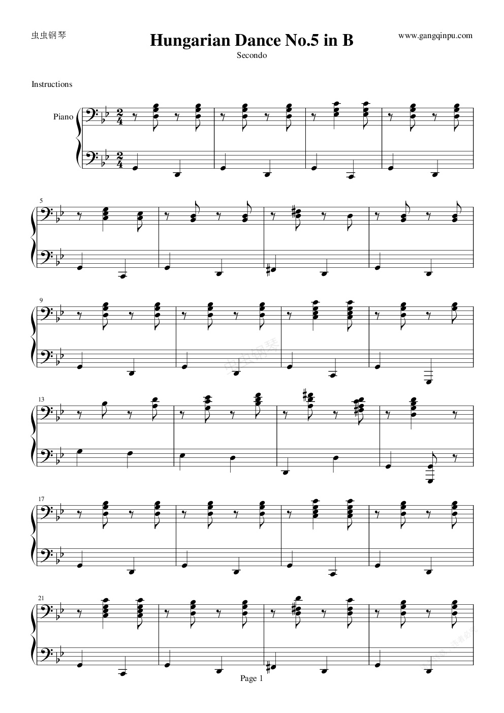 钢琴谱:匈牙利舞曲第五号B调四手联弹低音部