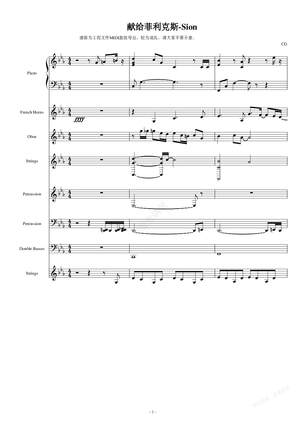 钢琴谱:献给菲利克斯-Sion