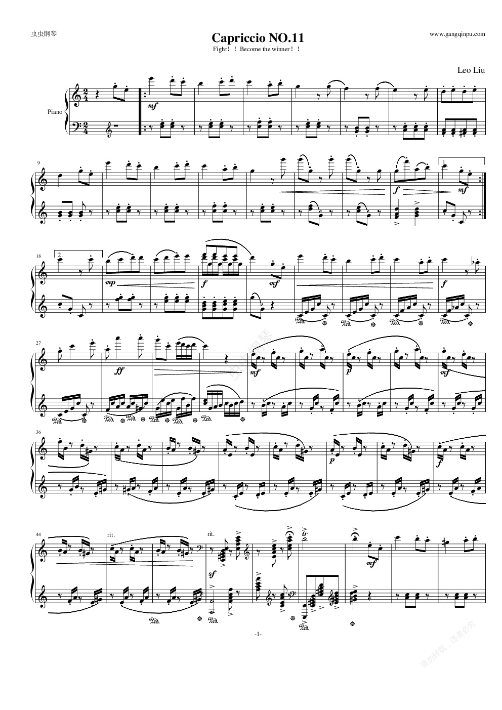 钢琴谱:随想曲11(迎战)