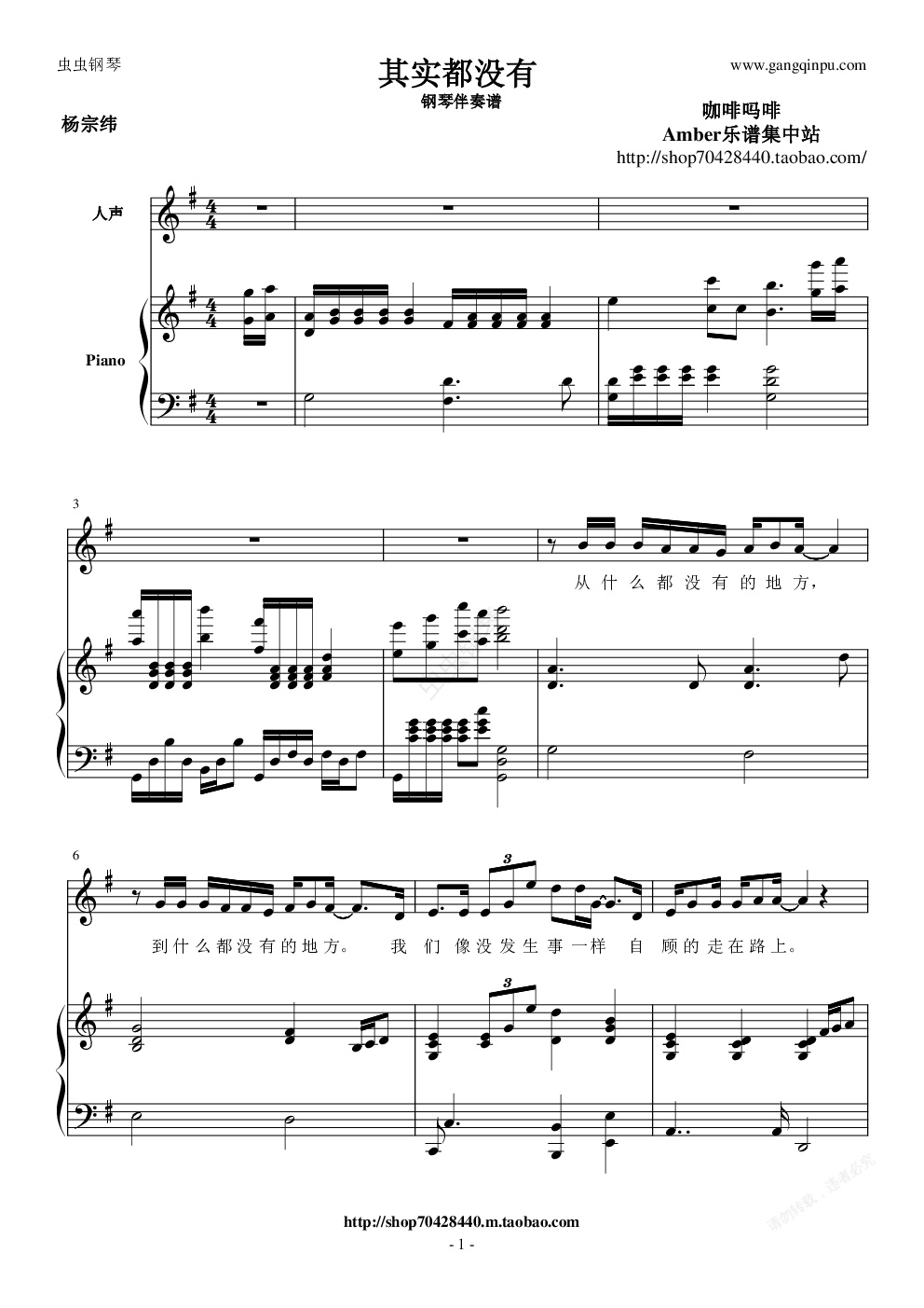 钢琴谱:杨宗纬《其实都没有》钢琴伴奏谱
