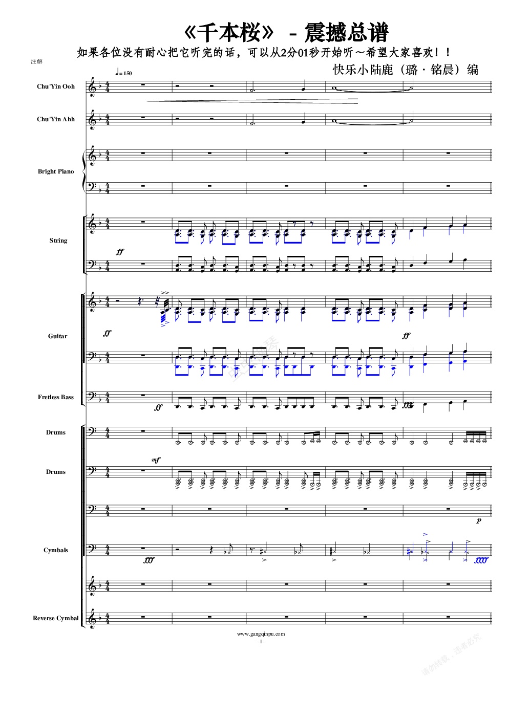 钢琴谱:【初音ミク】千本桜 - 震撼总谱