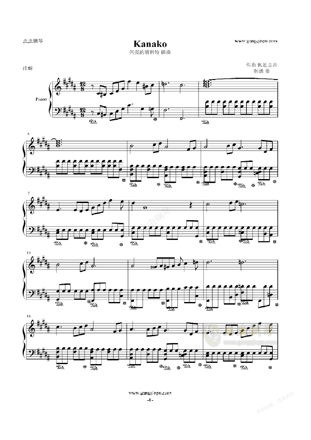 钢琴谱:Kanako 闪亮的塔科特 插曲