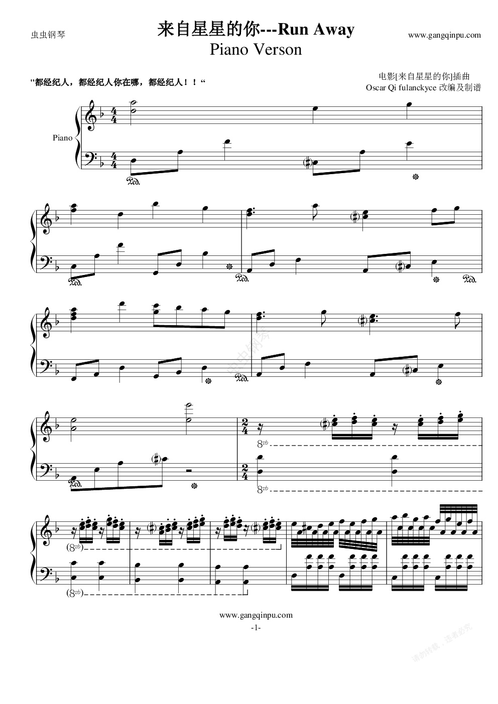钢琴谱:来自星星的你-----Run Away-紧张配乐