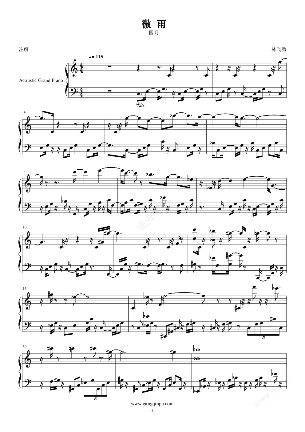 钢琴谱:微雨