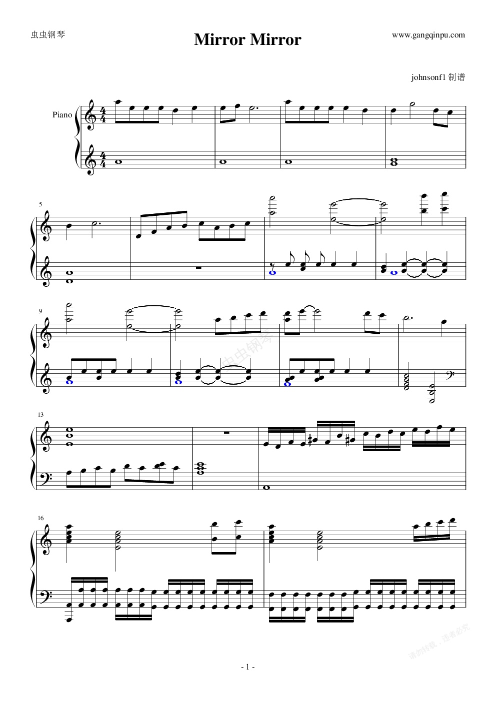 钢琴谱:Mirror Mirror