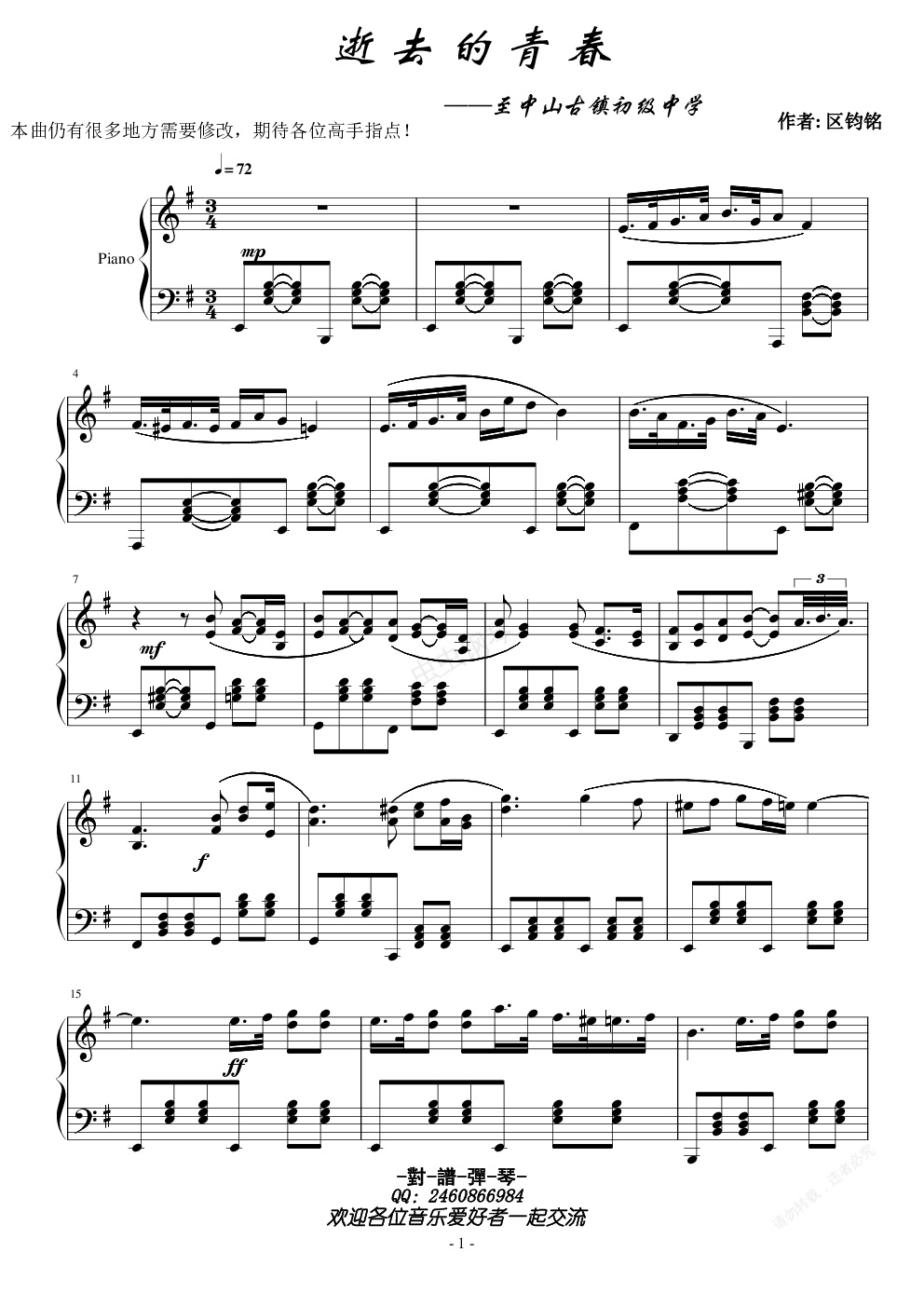 钢琴谱:逝去的青春