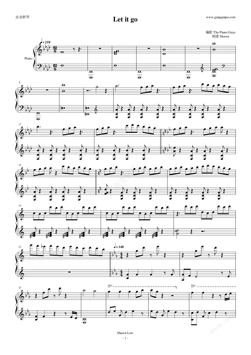 您的位置: 首页 > 钢琴谱库 > Let it go-the piano guys