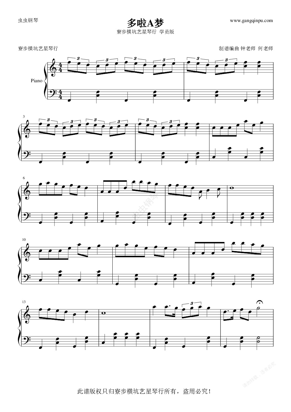 钢琴谱:多啦A梦