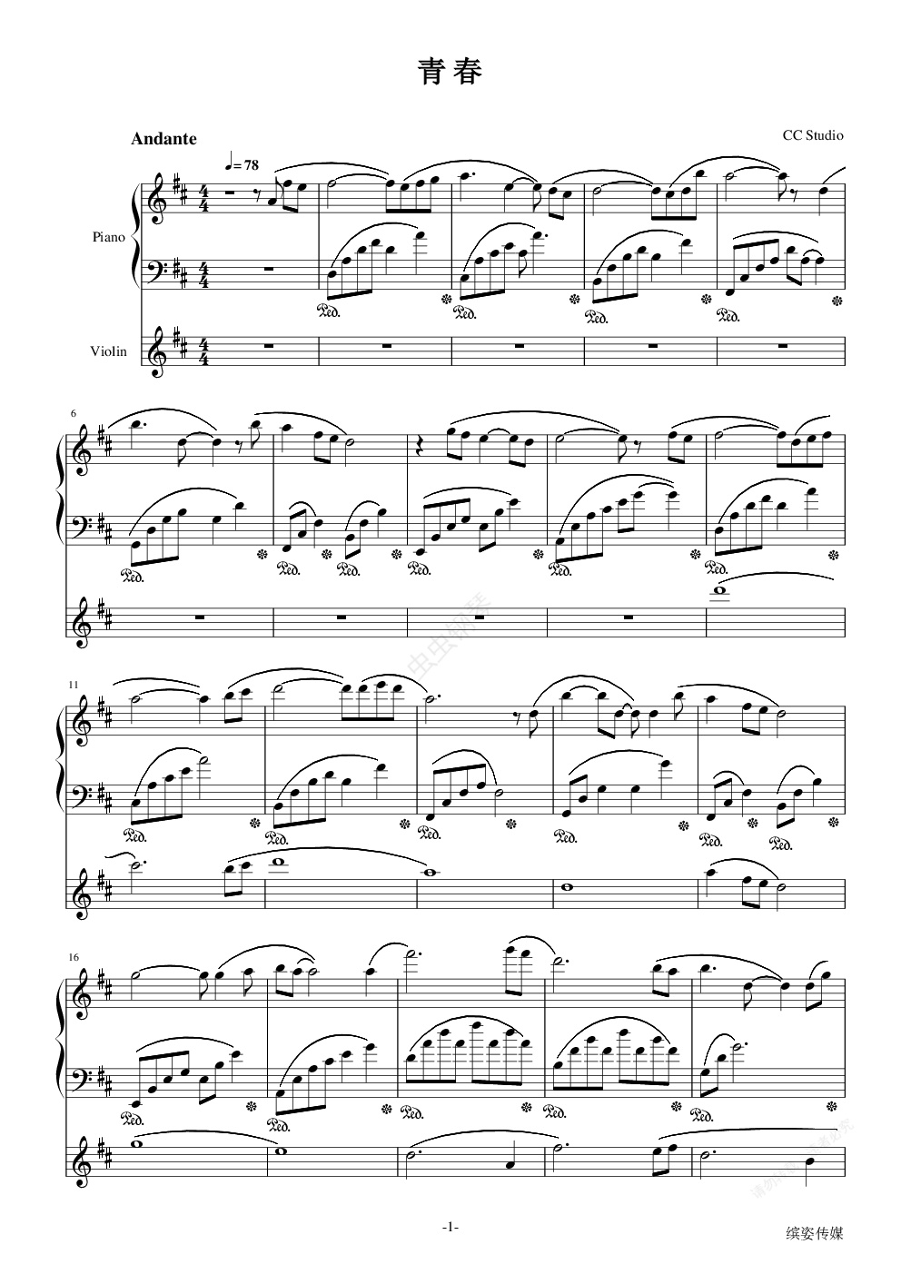 钢琴谱:青春