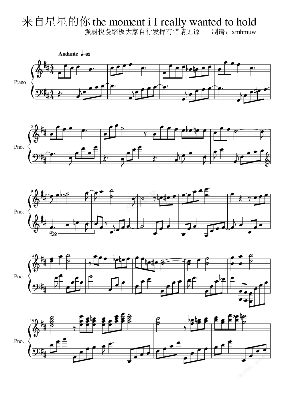 钢琴谱:来自星星的你 the moment i really wanted to hold【宜花死去时】