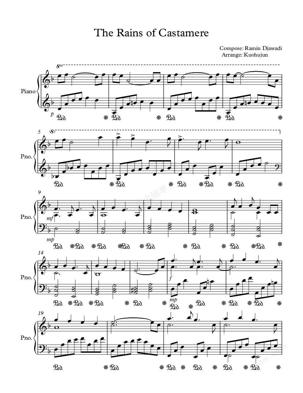 钢琴谱:【卡斯特梅的雨季】The Rains of Castamere