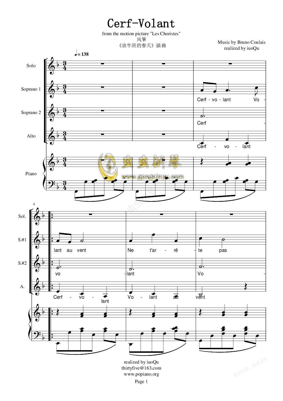 钢琴谱:Cerf-Volant 放牛班的春天 钢琴&声乐