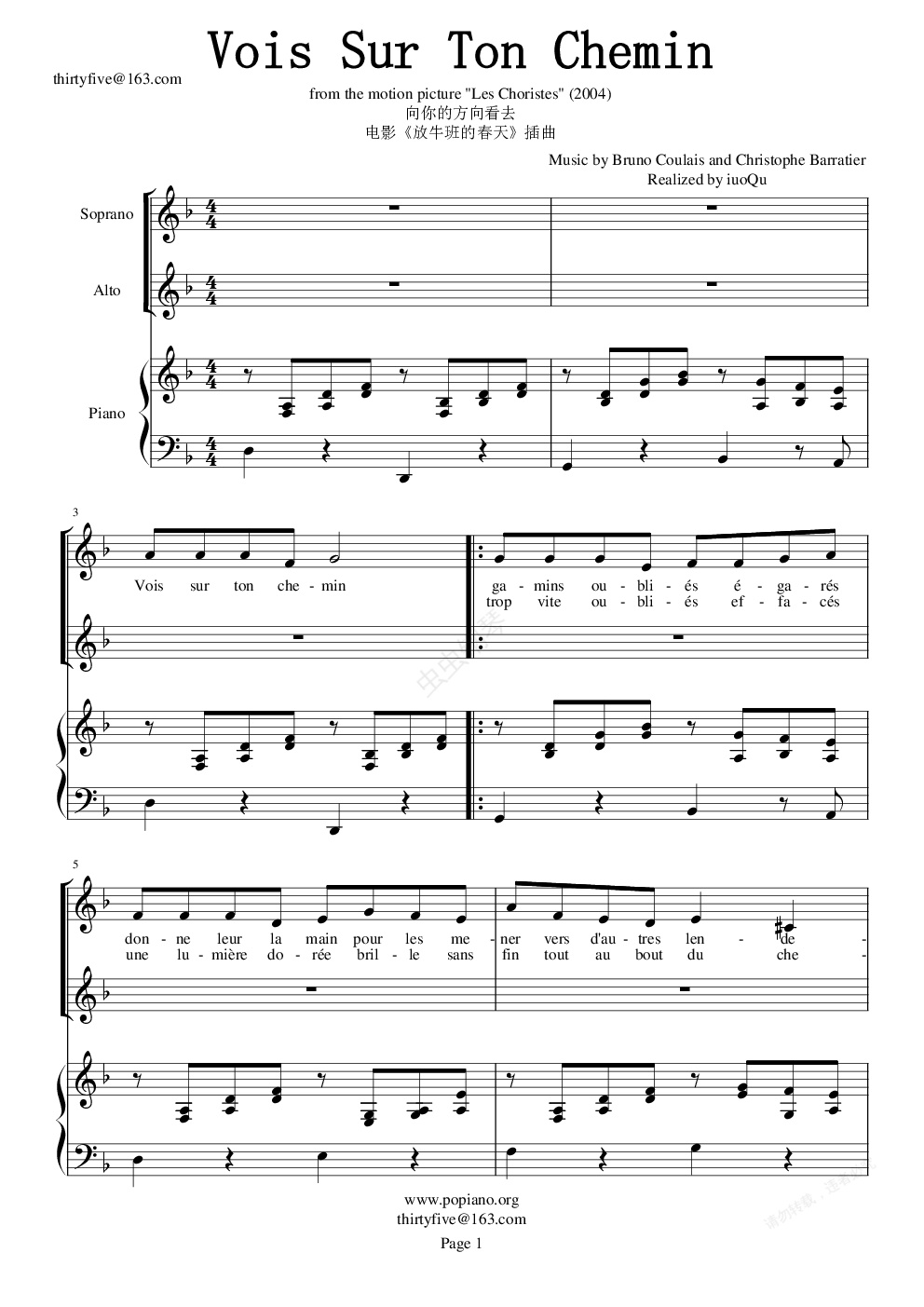 钢琴谱:眺望你的路途 Vois Sur Ton Chemin 放牛班的春天 主题曲 钢琴&声乐