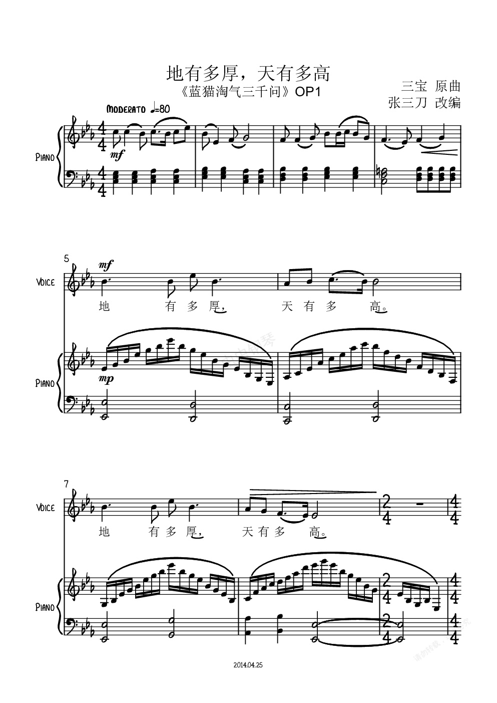 钢琴谱:(作废)【蓝猫淘气三千问】地厚天高
