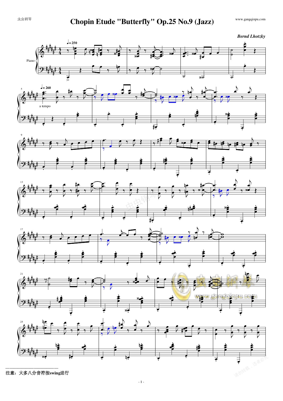 钢琴谱:Jazz Chopin Etude Op.25 No.9【独奏】