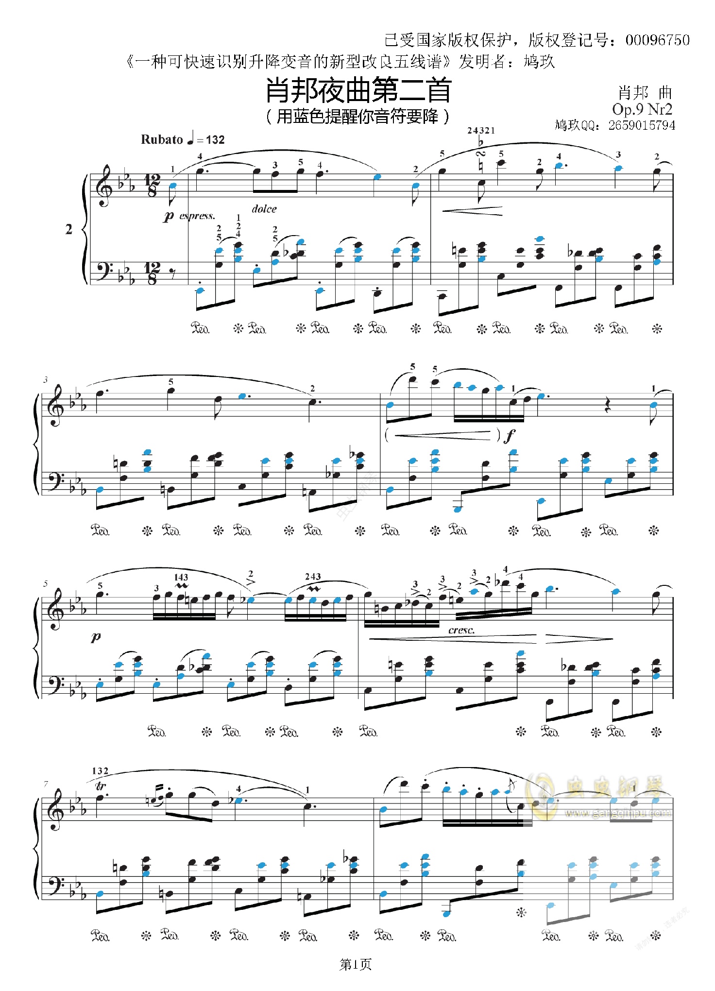 钢琴谱:肖邦夜曲op9no2(神奇视奏谱)