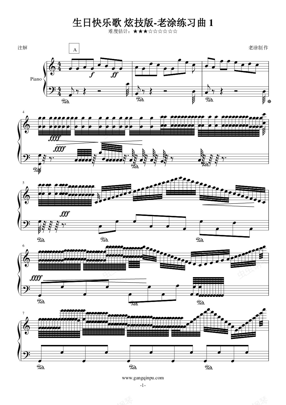钢琴谱:生日快乐歌 炫技版-老涂练习曲1
