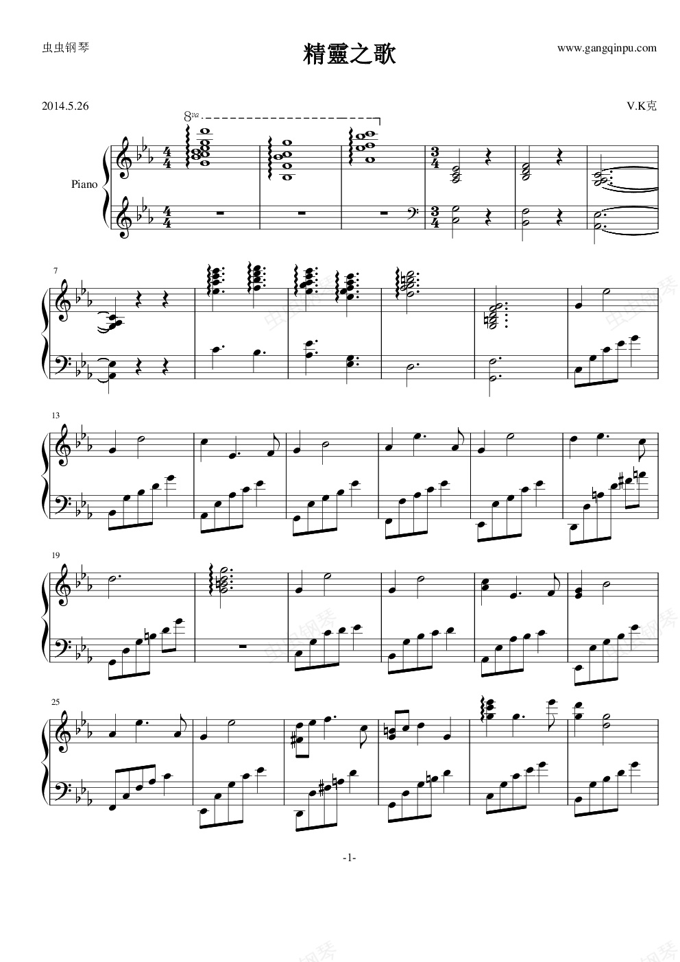 钢琴谱:精灵之歌(原声)